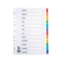 Q-Connect Multi-Punched January-December Reinforced Multi-Colour A4 Index Pre-Printed Tabs KF01524