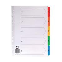 Q-Connect 1-5 Index Multi-punched Reinforced Board Multi-Colour Numbered Tabs A4 White KF01518