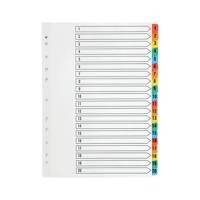 Q-Connect 1-20 Index Multi-punched Reinforced Board Multi-Colour Numbered Tabs A4 White KF01521