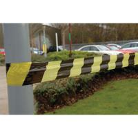This striped tape barrier allows you to cordon off areas and warn people of danger, with a black and yellow design that is eye-catching and obvious