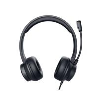 Lightweight on-ear USB PC headset with soft ear cushions and adjustable headband provides all day comfort