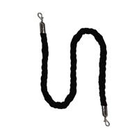 - Rope is black with chrome finish slide snap ends.