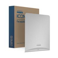 - Featuring first-of-a-kind versatility, the ICON dispenser effortlessly enhances the look of the washroom with an exclusive line of interchangeable faceplates to help reimagine the washroom, this faceplate is a silver mosaic design, for a sleek, elegant look.