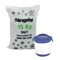Handheld Salt Spreader Kit which includes 1 handheld salt shaker and 1x 15kg bag of high purity white de-icing salt