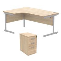 Astin Radial Left Hand SU Desk +Desk High Pedestal 1600x1200 Canadian Oak/Silver KF820047