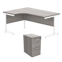 Astin Radial Left Hand SU Desk +Desk High Pedestal 1600x1200 Alaskan Grey Oak/Arctic White KF820148