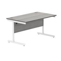 Polaris Rectangular Single Upright Cantilever Desk 1400x800x730mm Alaskan Grey Oak/White KF822000