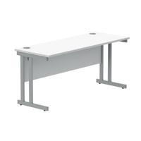 Polaris Rectangular Double Upright Cantilever Desk 1600x600x730mm Arctic White/Silver KF822360