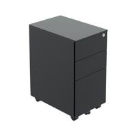 This Jemini slimline steel pedestal features 2 stationery drawers and 1 filing drawer suitable for use with A4 suspension files