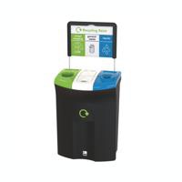 The popular Meridian Office Recycling Bin Triple comBin Triplees 33 litres, 44 litres and 9.5 litres of liquids with a narrow footprint allowing it to fit comfortably in corridors without reducing access.Pack size: 1 | Product code: LFE118142